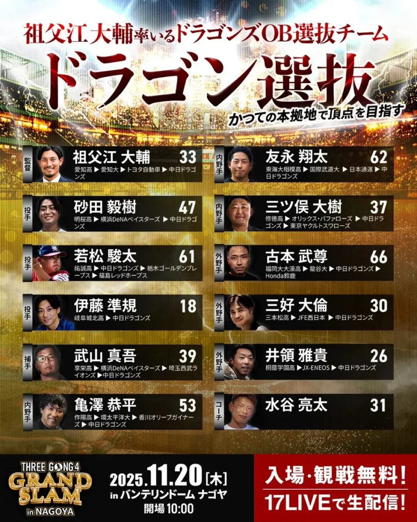 祖父江大輔率いるドラゴンズOB選抜チームは豪華メンバーで頂点を目指す!