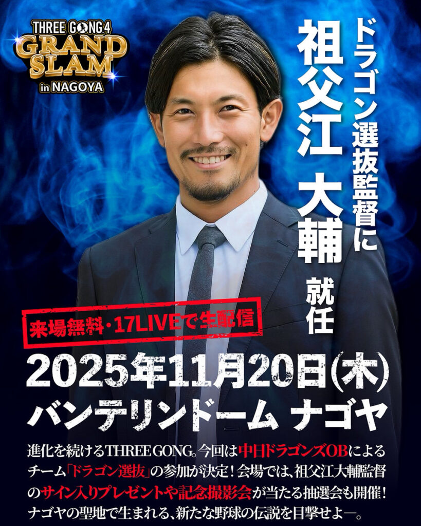THREEGONG元ドラゴンズOBチームが結成!「THREE GONG.4 -GRAND SLAM- in NAGOYA」に中日ドラゴンズOBにより結成される「ドラゴン選抜」参戦が決定!
